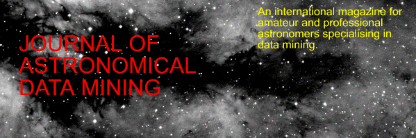 The Journal of Astronomical Data Mining (JADM) is an on-line electronic journal for results, analysis and studies of astronomical objects based on data mining. Two types of material will be published. Research Notes are a quick and easy way of sharing ideas or discoveries you think will be of interest to other astronomers. Articles equate to a traditional journal article. Reseach Notes are not required to be complete "polished" studies but JADM has recruited an editorial board to peer review all submitted articles. Accepted ArticlesIdentifying and characterising red dwarf stars of spectral classes M3 to M8 in the Sloan Digital Sky Survey Data Release 7 Unreported Common Proper-Motion Pairs in the UCAC3 Catalogue Research Notes Looking at Red Giant stars in the 2MASS database Meeting the Near Neighbours (1) Variable Star Targets via Astronomical Outliers Variable Star Targets - Free, gratis and for nothing |
