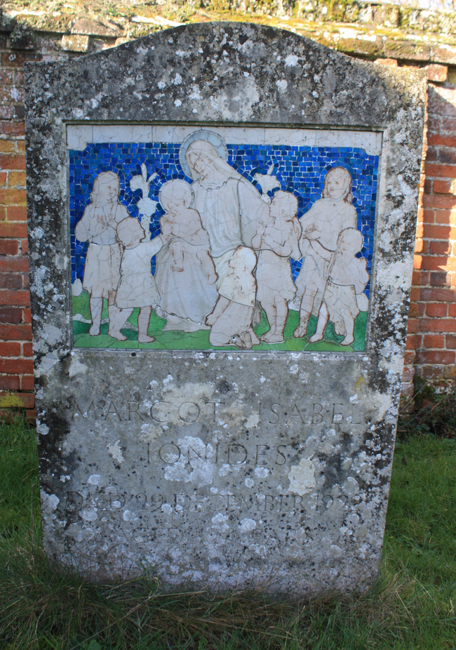 An unusual mosaic showing baby Jesus and the Blessed Virgin Mary.