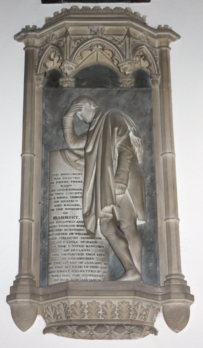 The large memorial to John Pugh Pryse MP (died 1774), with numerous cherubs, one holding portrait relief, attributed to Van der Hagen of Shrewsbury.