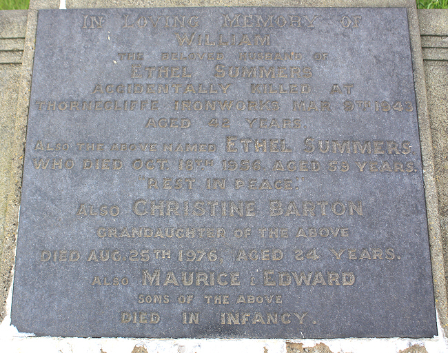 William Summers was killed at the Thornecliffe Ironworks in 1943.