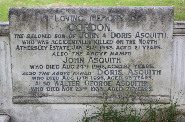 Gordon Asquith was accidentally killed on the North Athersley Estate in 1953.