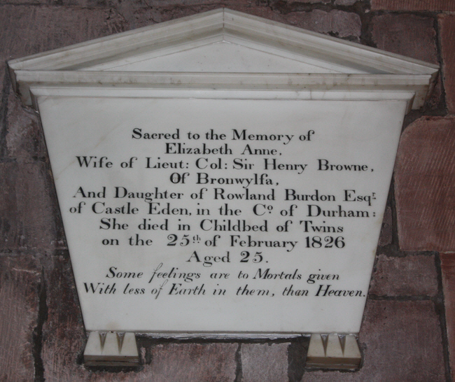 Both the wives of Sir Henry Browne died "in childbed" - Louisa in 1823 and Elizabeth in 1826.