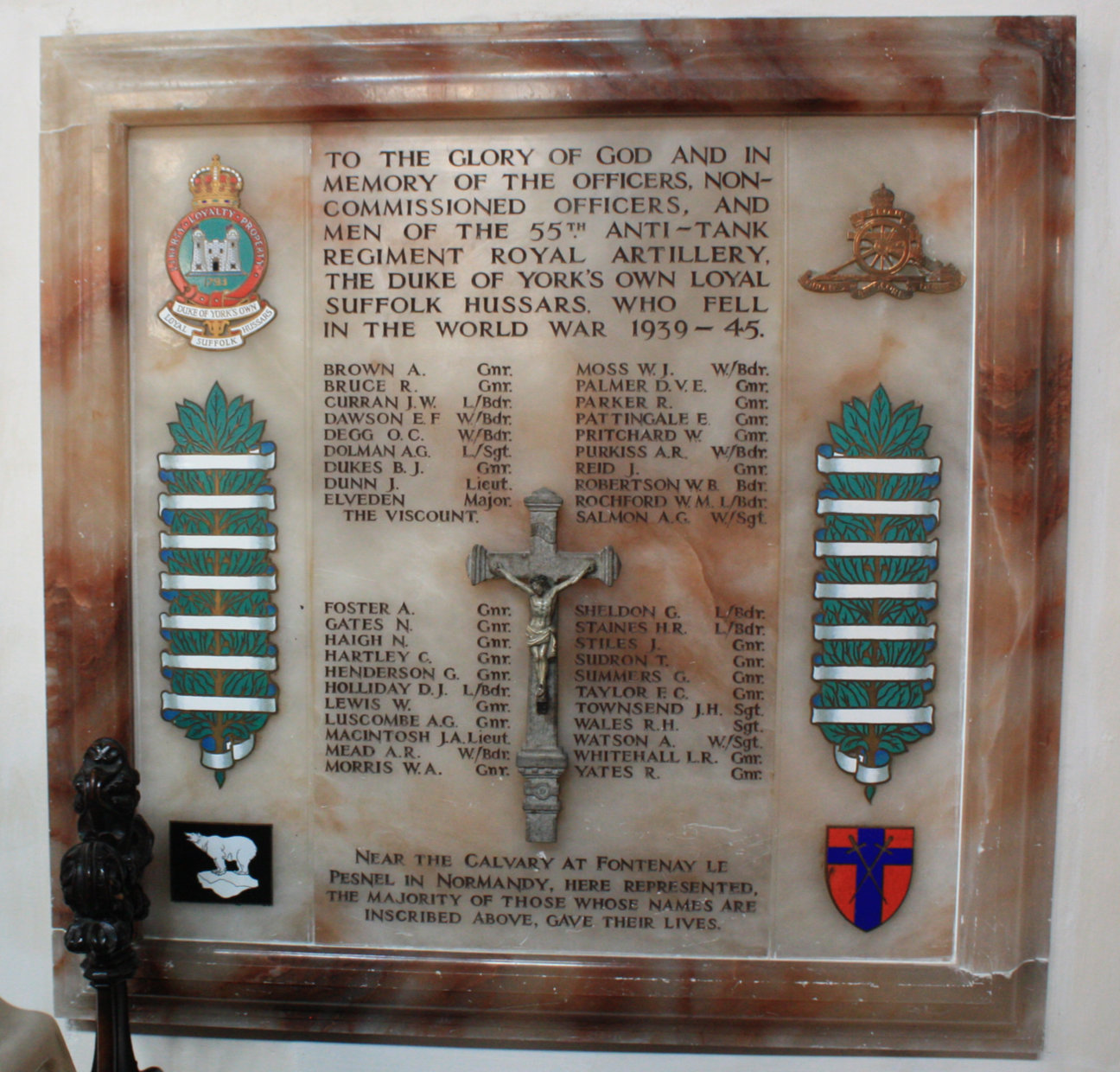 The elaborate and colourful war memorial to members of the 55th Anti-Tank Regiment Royal Artillery.