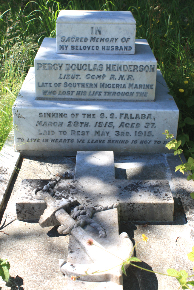 The Falaba was a 5,000 ton British passenger-cargo ship. It was sunk on 28 March 1915 by the German submarine U-28, which was commanded by Baron Forstner. Falaba was off the southern Irish coast when U-28 surfaced and stopped the British ship. U-28 fired a single torpedo into Falaba, resulting in 100 deaths, including that of one US citizen, Leon Thresher, a mining engineer headed towards the Gold Coast in Africa (now the country of Ghana).