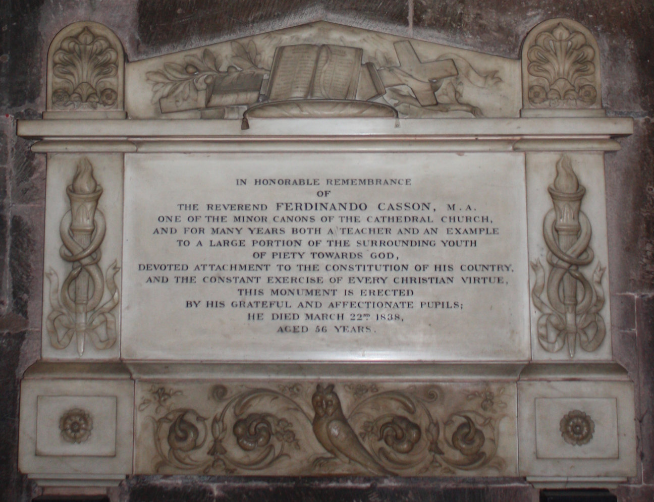 Ferdinando Casson was a Minor Canon of the Cathedral.