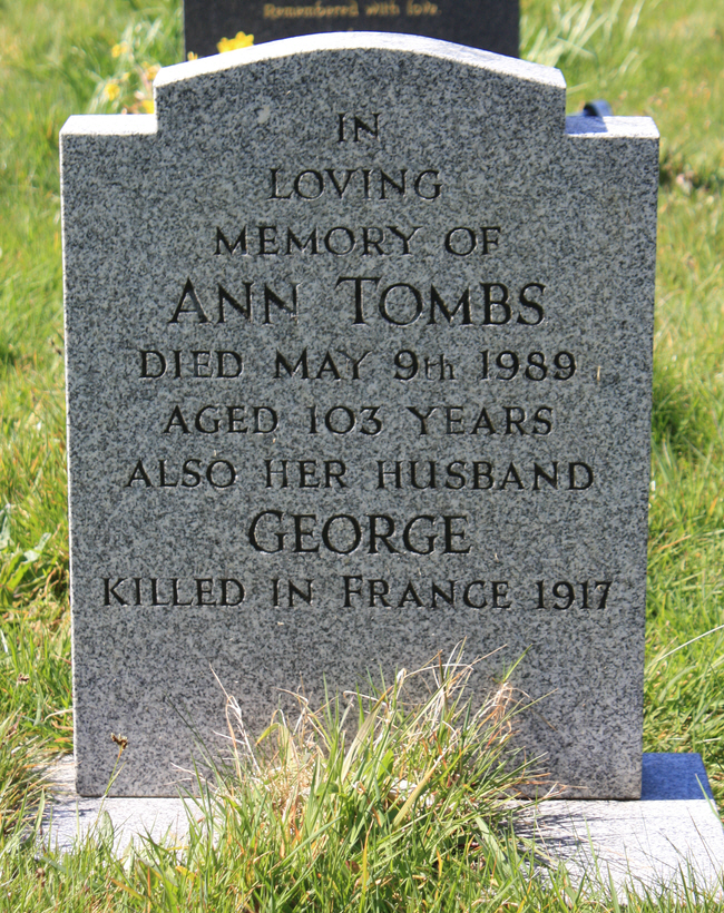 Ann Tombs died aged 103 having been a widow for over 71 years.