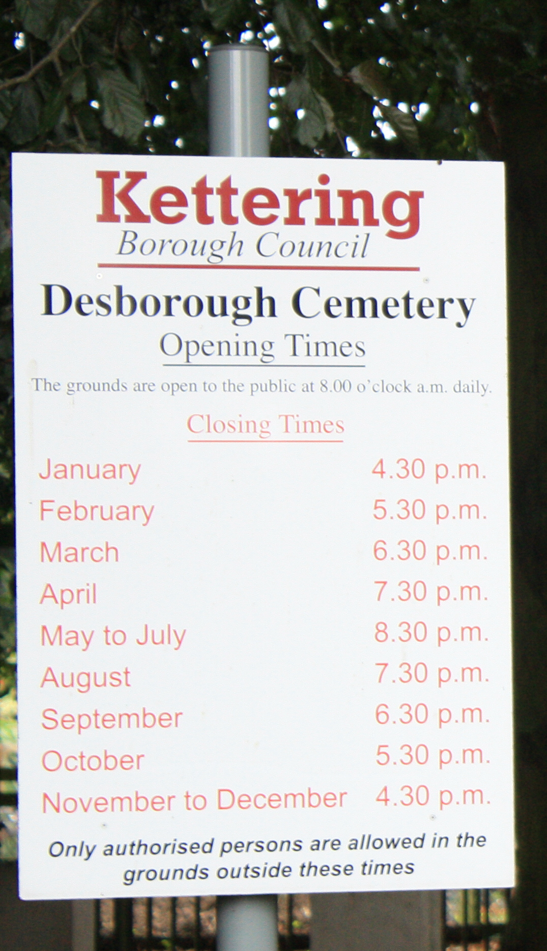 A modern, neat sign at the front of a cemetery that was neither modern nor neat but very interesting nevertheless.