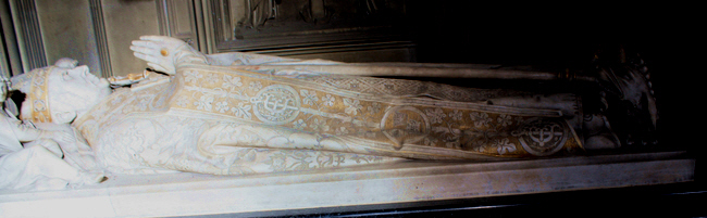 John Baron Tiptoft - beheaded 1470. He is lying between two of his wives