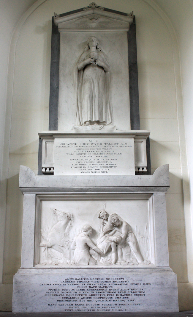 The memorial to Frances Thomasina Lambart (died 1819), daughter of Charles Lambart of Beauparc, Co. Meath, Ireland, and the wife of Charles, Earl Chetwynd. Also to their son Walter (died 1818) aged five.