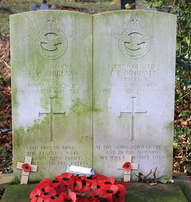 More details of this accident can be found here and here. "There was no sign of Q-Queen T1892. P/O Shirlaw and his crew P/O Dugdale (Observer) and F/O Mair (W/Op/AG) failed to return". The aircraft is recorded as "having hit a balloon cable at Pilton Hackett, SW of Birmingham". The crew is mentioned in the Squadron Roll of Honour and had service numbers 81054, 84034 and 78277.