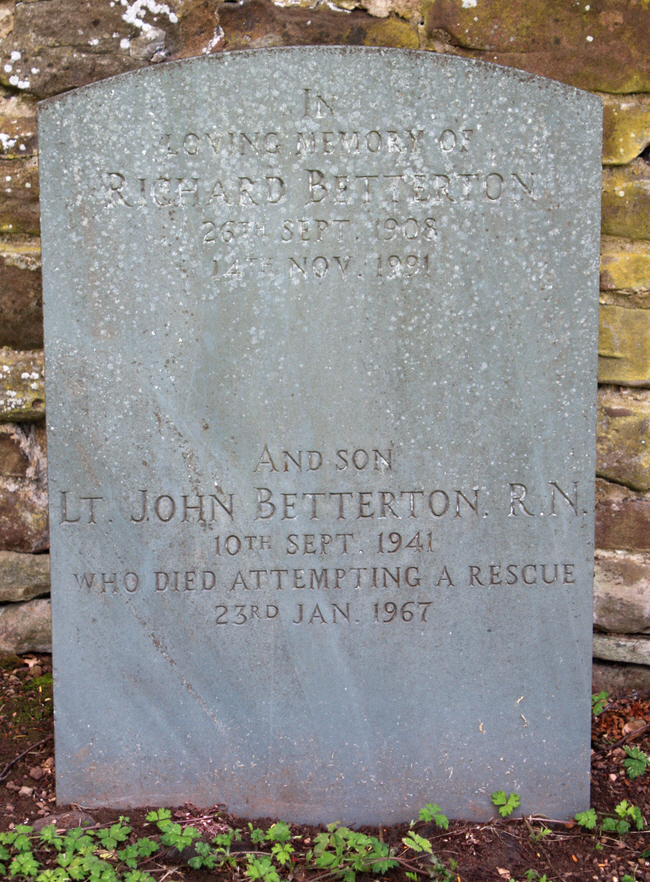 Lt. John Betterton served in the Royal Navy. He died "attempting a rescue", aged 26.