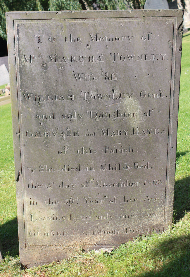 Mrs Martha Townley died in "Child Bed". We cannot recall ever seing the title Mrs on a grave.