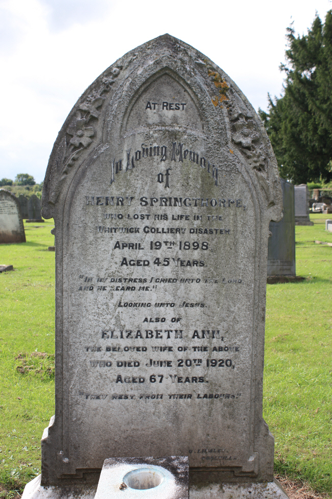 Thirty five men from Whitwick died in a colliery disaster at Whitwick in April 1898. This is the grave of William Belcher