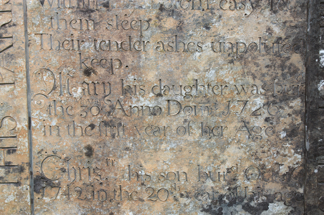 This memorial seems to have been attached to the wall of the church using bent nails.