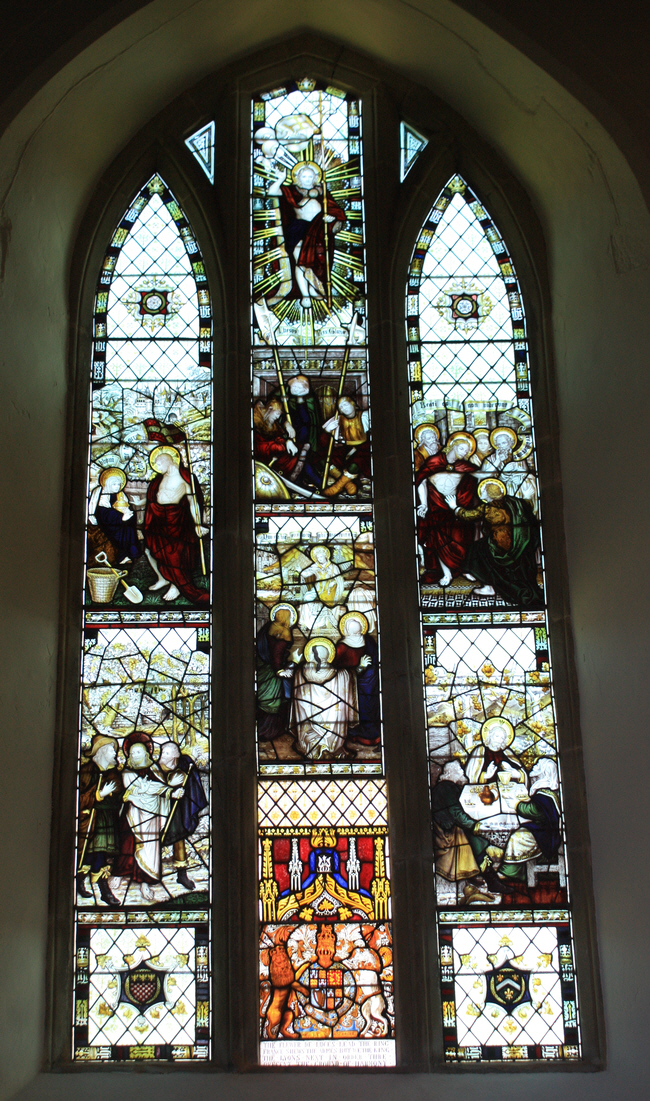 Crucifixion - the first example of the wheatsheaf motif in a Kempe window.