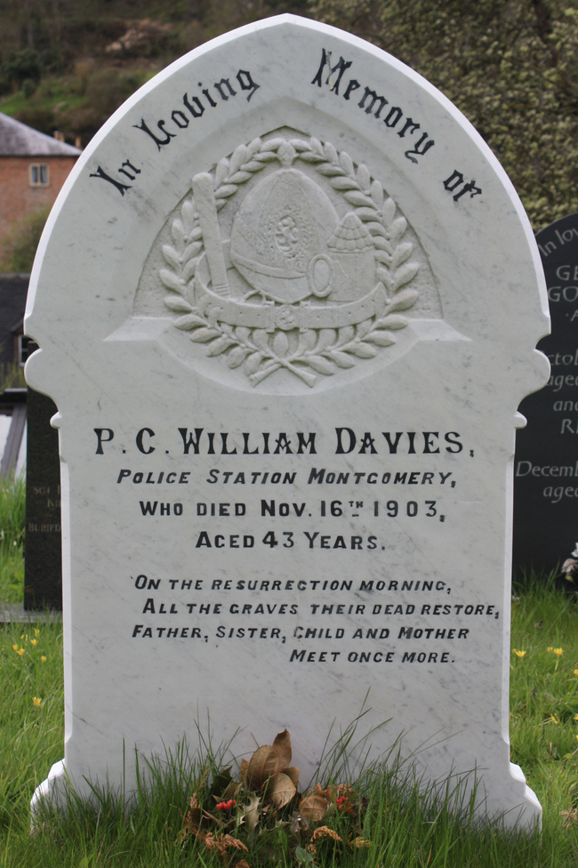 PC William Davies, 43, died from injuries suffered whilst trying to make an arrest in Montgomery in 1903. The police then evicted his wife and four children from the family home two weeks after his death.