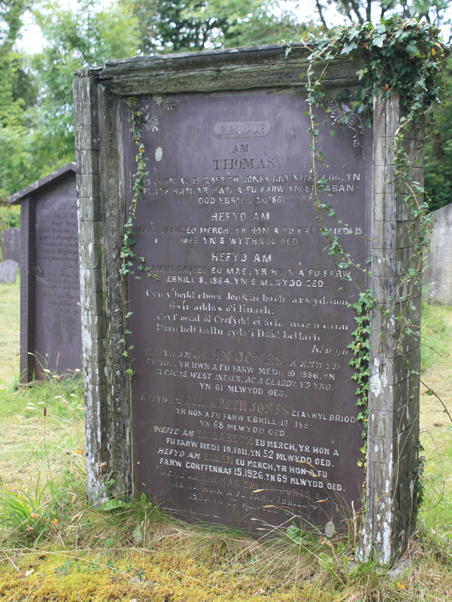 A number of the gravestones were of a design we had not seen before - wooden frames surrounding a central slate section. Since slate is much more hard-wearing than wood it isn't clear exactly what purpose the frame was intended to serve.