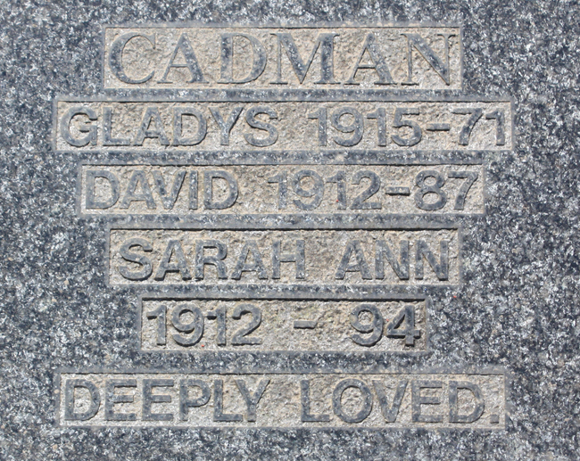 Sarah Ann Cadman, 1912 to 1994.