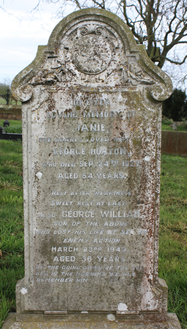 George William Horton "lost his life at sea by enemy action" in 1943.