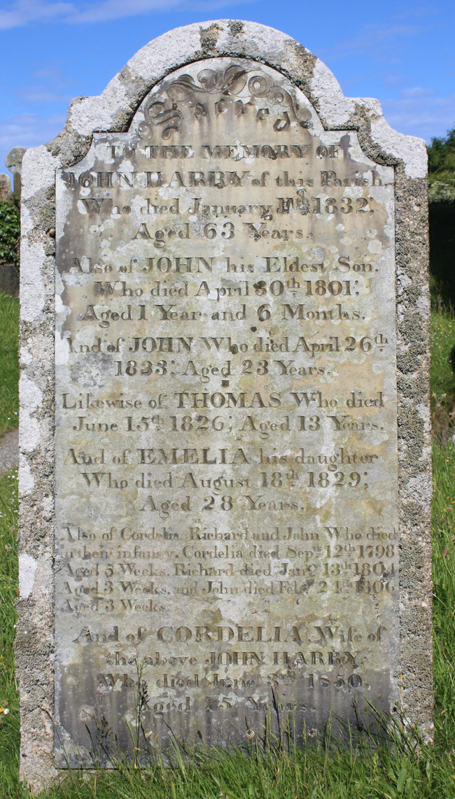 John and Cordelia Harry lost children at the age of 3 weeks (2), 5 weeks, 18 months, 13 years, 23 years and 28 years.