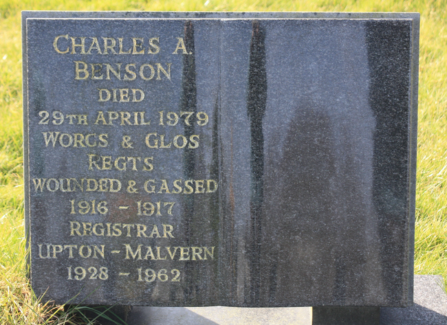 Charles Benson was Registrar for Upton upon Severn and Malvern from 1928-1962.