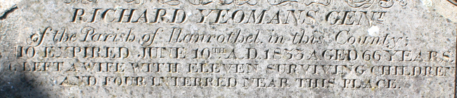 Richard Yeomans died leaving a wife "with eleven surviving children". Four other children pre-deceased him.