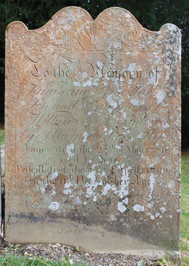The mason had to insert the last two letters of the name Priscillah above the rest of the text. We noticed that the adjacent grave, shown above, used the spelling Priscilla.