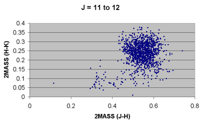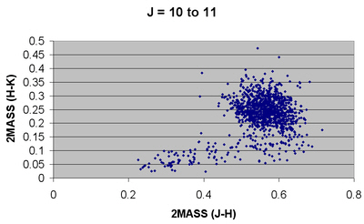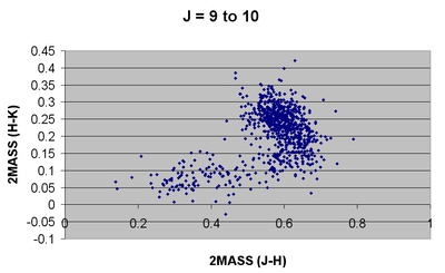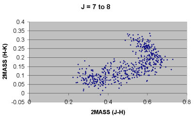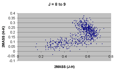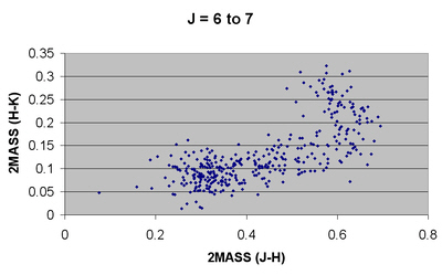 All the stars having proper motion of >300 mas/yr in either right ascension or declination were extracted from the UCAC3 catalogue. The 2MASS (J-H) and (H-K) magnitudes were calculated for each of the stars and the results presented graphically.