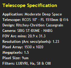 This image was created by median combining 9 x 60 second unfiltered images taken using a remotely controlled telescope in Australia - while sitting in my study in Daventry, England.
