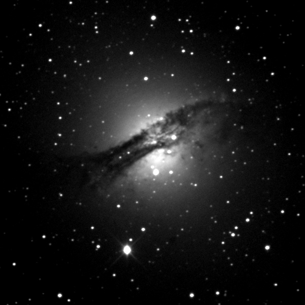 NGC 5128, better known as Centaurus A, was discovered by Jamas Dunlop and was included in his 1827 catalog. Sir John Herschel described the galaxy in his 1849 "Outlines of Astronomy" as "two semi-ovals of elliptically formed nebula appearing to be cut asunder and separated by a broad obscure band parallel to the larger axis of the nebula, in the midst of which a faint streak of light parallel to the sides of the cut appears." Modern astronomy has shown the band to be due to dust that almost completely hides the centre of the galaxy.