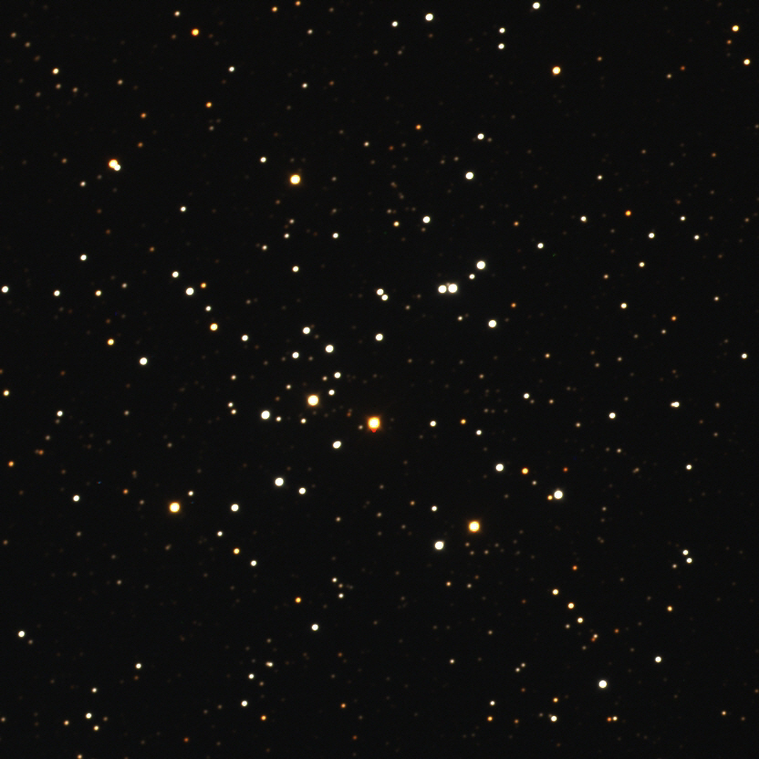 The open cluster M41 (NGC 2287) lies at a distance of about 2300 light years. It has a diameter of 26 light years and an estimated age of about 190 million years.