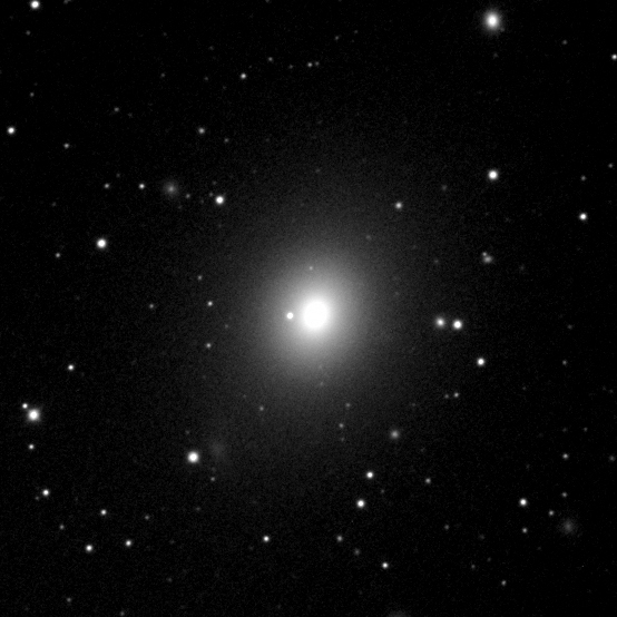 The elliptical galaxy M49 (NGC 4472) was the first member of the Virgo cluster of galaxies to be discovered in 1771. At a distance of 60 million light years it has a diameter of about 160,000 light years.
