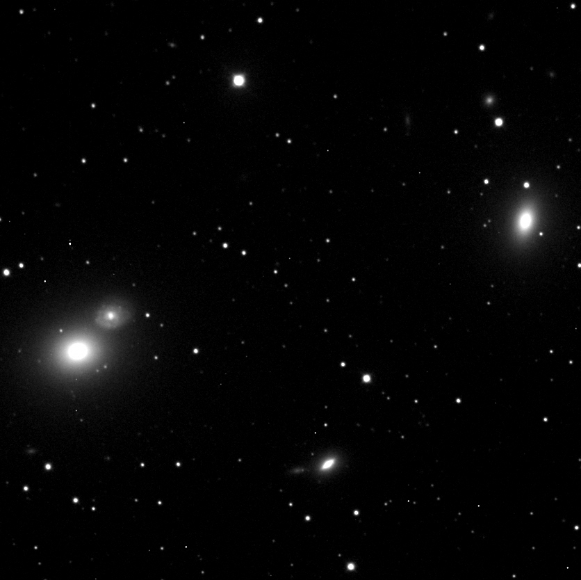 M59 (NGC 4621) is one of the larger elliptical galaxies in Virgo although it is considerably less luminous and massive than M87. Somewhat flattened, at its assumed distance of 60 million light years, it has a maximum diameter of 90000 light years. M60 (NGC 4649) is also a giant elliptical galaxy. At a distance of some 60 million light years it has a diameter of 120000 light years.